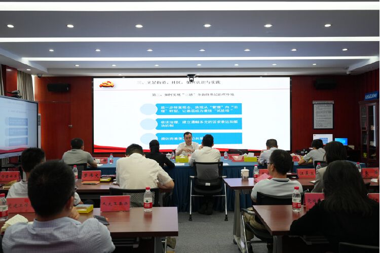会议中,吴定海围绕推进文化自信自强主题,聚焦现代基层治理,运用生动的事实,典型的案例,从新时代文化建设的内涵与要求,深圳勇担新的文化使命、建设城市文明典范的先行示范实践路径,立足街道及社区应如何认识与实践基层治理文化建设三个维度入手,从宏观角度向微观角度循序渐进展开,分析了新时代背景下文化建设在基层治理工作中如何实践运用的深刻内涵。