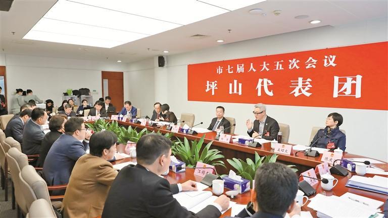 深圳市七届人大五次会议坪山代表团分组讨论。 深圳特区报记者 何龙 耿超逸 摄