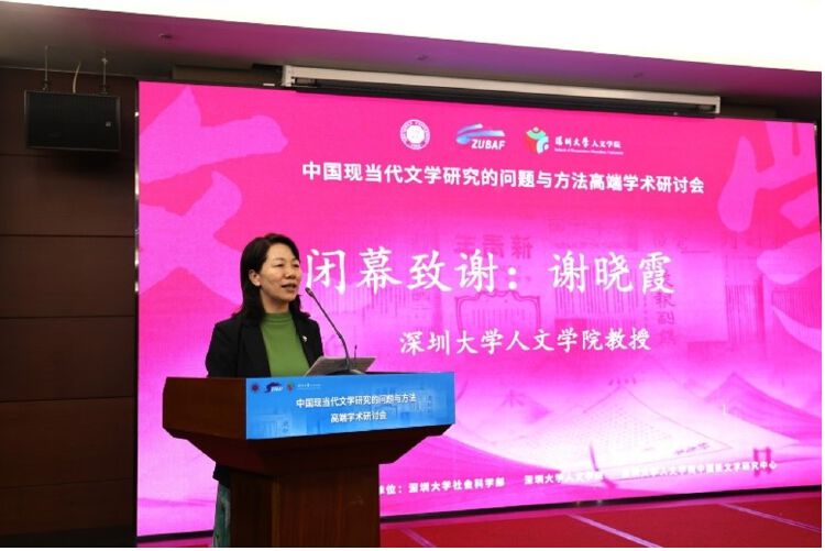 本次研讨会闭幕式由汤奇云主持,贺仲明对会议进行学术总结。贺仲明认为,本次研讨会具有“学科交叉融合”“历史意识与前沿意识结合”“立足具体问题”三个重要特点,学者们的发言质量都特别高,是一次非常成功的学术研讨会。作为主办方代表,谢晓霞在致答谢辞时表示,期待各位专家学者继续深度支持指导深圳大学中国现当代文学的发展。