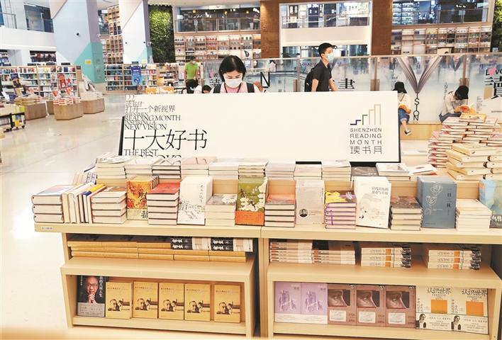 市民昨日在中心书城读书月推荐好书柜台前浏览选购图书。 深圳特区报记者 齐洁爽 摄