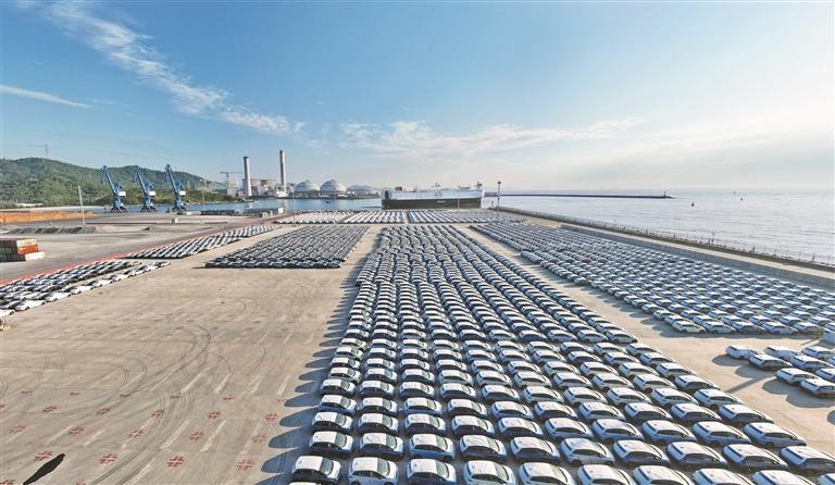 随着比亚迪首条滚装运输船“EXPLORER NO.1”(开拓者1号)拉响起航汽笛,深汕特别合作区小漠国际物流港正式开通了汽车滚装直达欧洲的外贸航线。深圳特区报记者 莫荣宝 摄