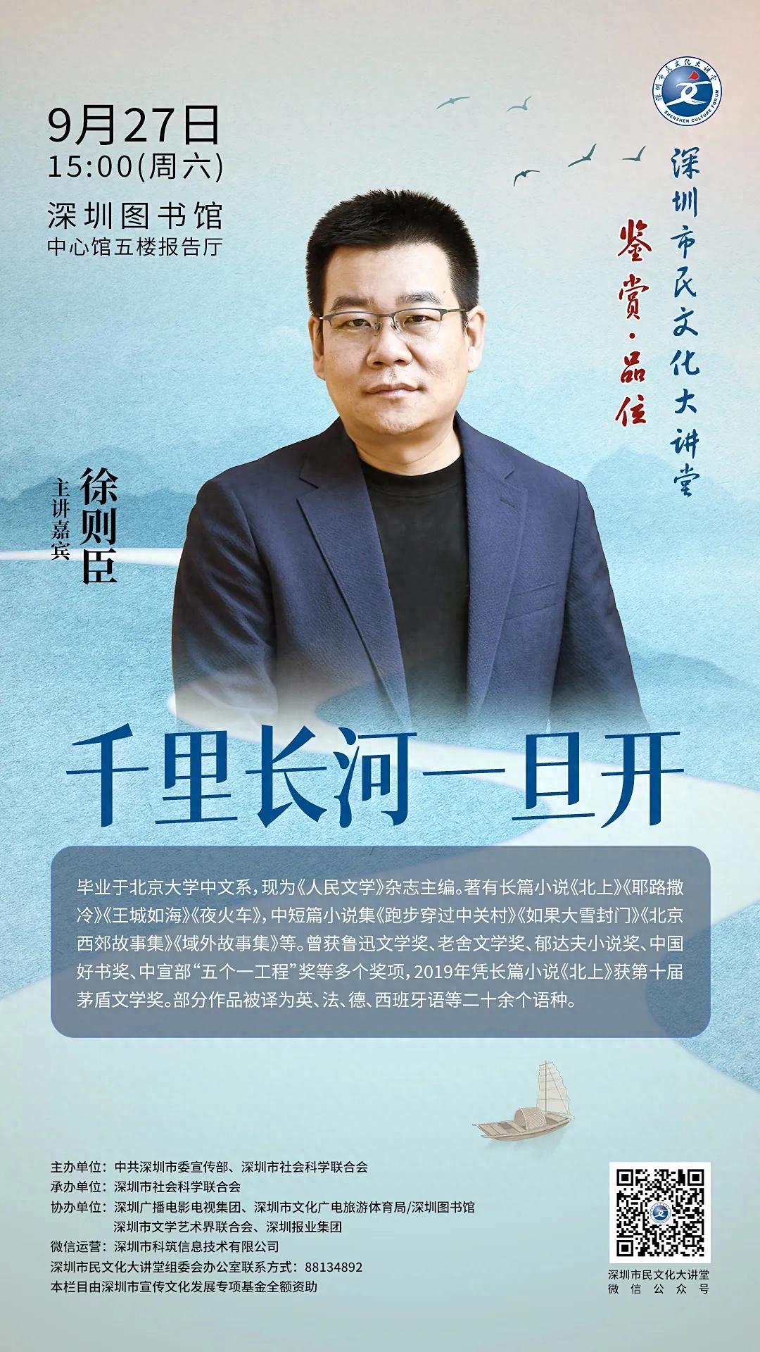 本周六,《北上》的作者、《人民文学》杂志主编徐则臣受邀走进深圳市民文化大讲堂,带来以“千里长河一旦开”为主题的分享。他将不仅揭秘《北上》创作背后不为人知的细节,更将带领大家深入解读大运河如何塑造了中华民族的文化认同,探索这条千年人工运河所蕴含的政治、经济与人文密码。