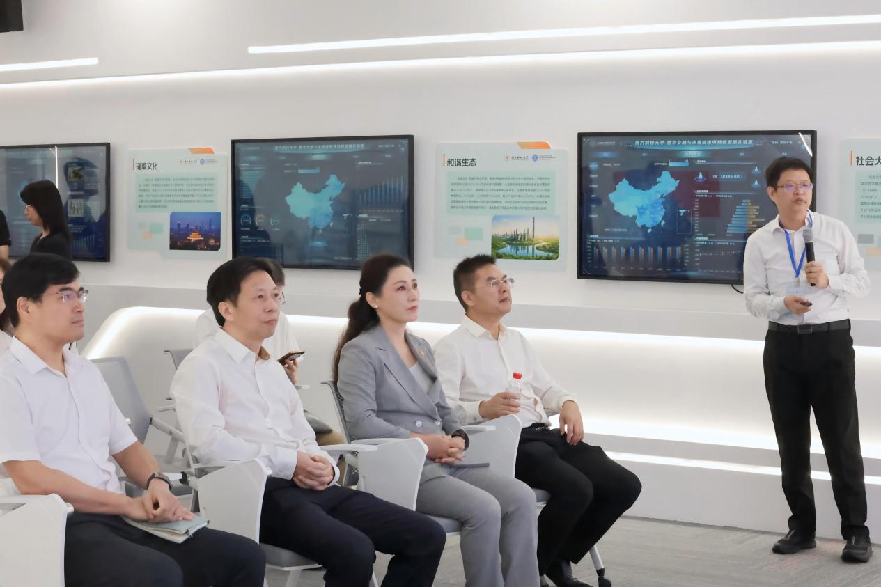调研期间,何新红一行参观了南方科技大学社科中心暨社科高等研究院的“陶说考古陶瓷标本数据库陈列馆”,走访了廉洁研究院的“大数据与AI监督实验室”和全球城市文明典范研究院的“数字文明与未来城市可持续发展实验室”,了解了南方科技大学市社科重点人文基地建设情况。